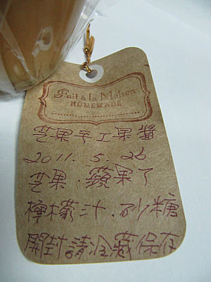 這瓶用愛文芒果做的果醬來自Joy的格友「咖啡露露」,