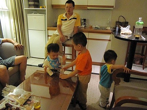 今天小朋友們完全大解禁,跟著大人吃喝,連辣味的魚酥都嘗了幾口。