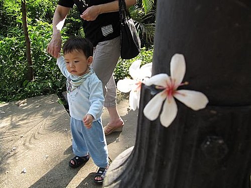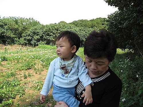 阿嬤怕曬、也怕小艾文曬黑,所以儘量躲在樹蔭下。
