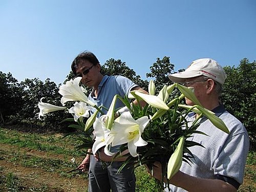 這裡所培育的台灣原生種百合是鐵砲百合,跟艾文拔帶回來的 台灣野百合(高砂百合) 不一樣,這片百合花田其實並不算大,目前開放採花,15個花苞100元,很便宜呢!老闆還說盛開的百合花不算錢,隨便採囉!