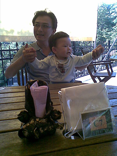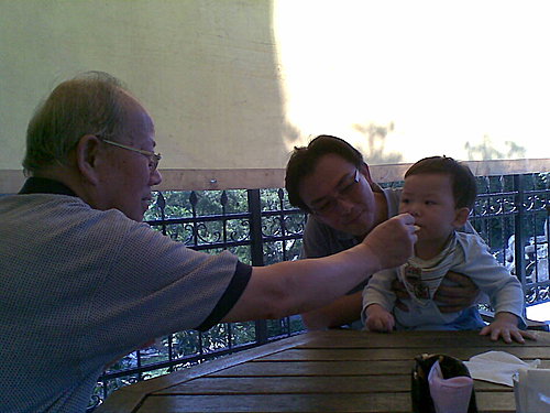 阿公點了冰淇淋讓小艾文嚐嚐,不過他一樣不是很愛吃冰的,也好。
