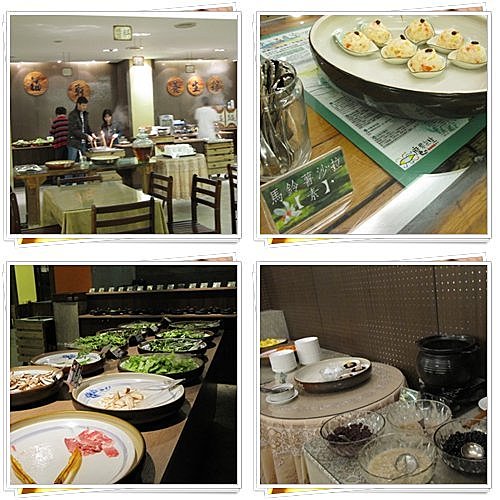 用餐的時候自己夾喜歡吃的菜、放到一旁的大鍋裡面川燙、然後淋上醬料就可以享用囉!夠養生吧!