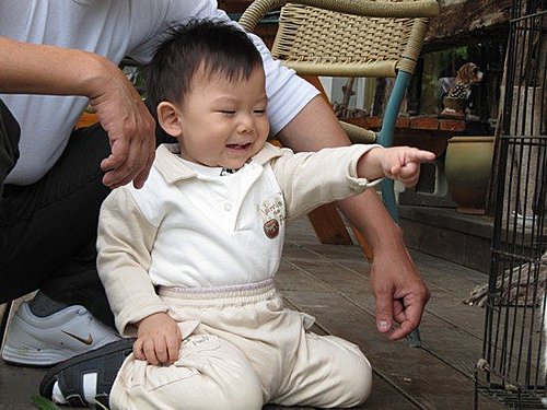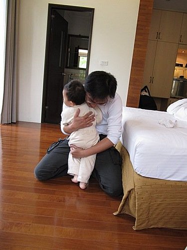 小艾文最近很喜歡這招→→用力地飛撲到爸媽或者阿公阿嬤的懷裡,把自己整個埋近大人的懷抱中,