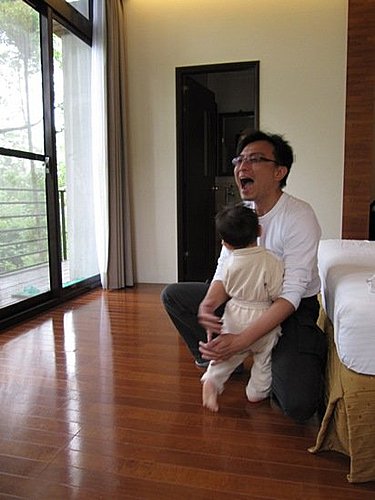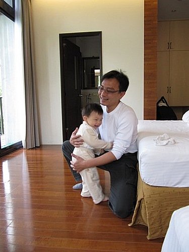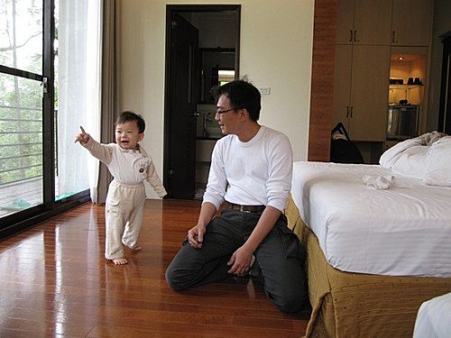 木地板的房間讓我們比較放心讓小艾文在裡面活動,小艾文這晚睡得非常非常香甜,艾文拔也是。