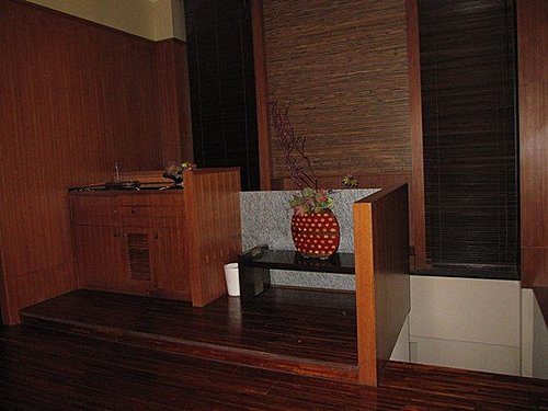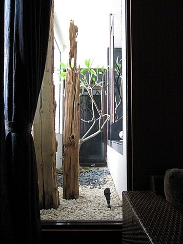 洗手檯後方 (從客廳座位可以看出去) 就是一片人造景觀,裡面的樹是真的。