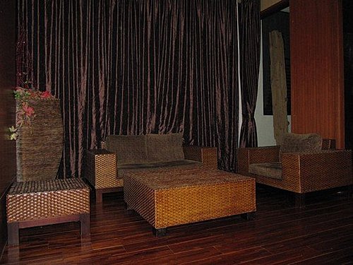 藤製的桌子和座椅,加上木頭地板,小艾文興奮地在這裡走來逛去,還算是安全。