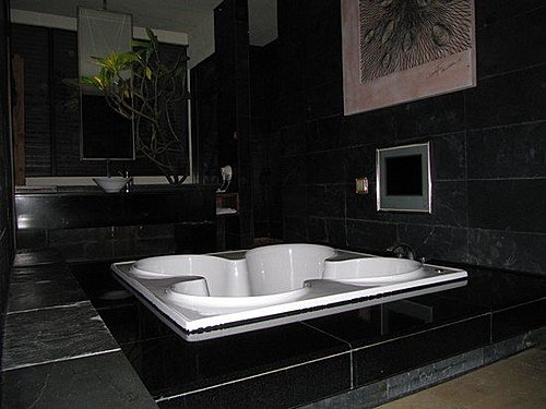 超級大的按摩浴缸,我們全家都坐進去了,還有很寬裕的空間。
